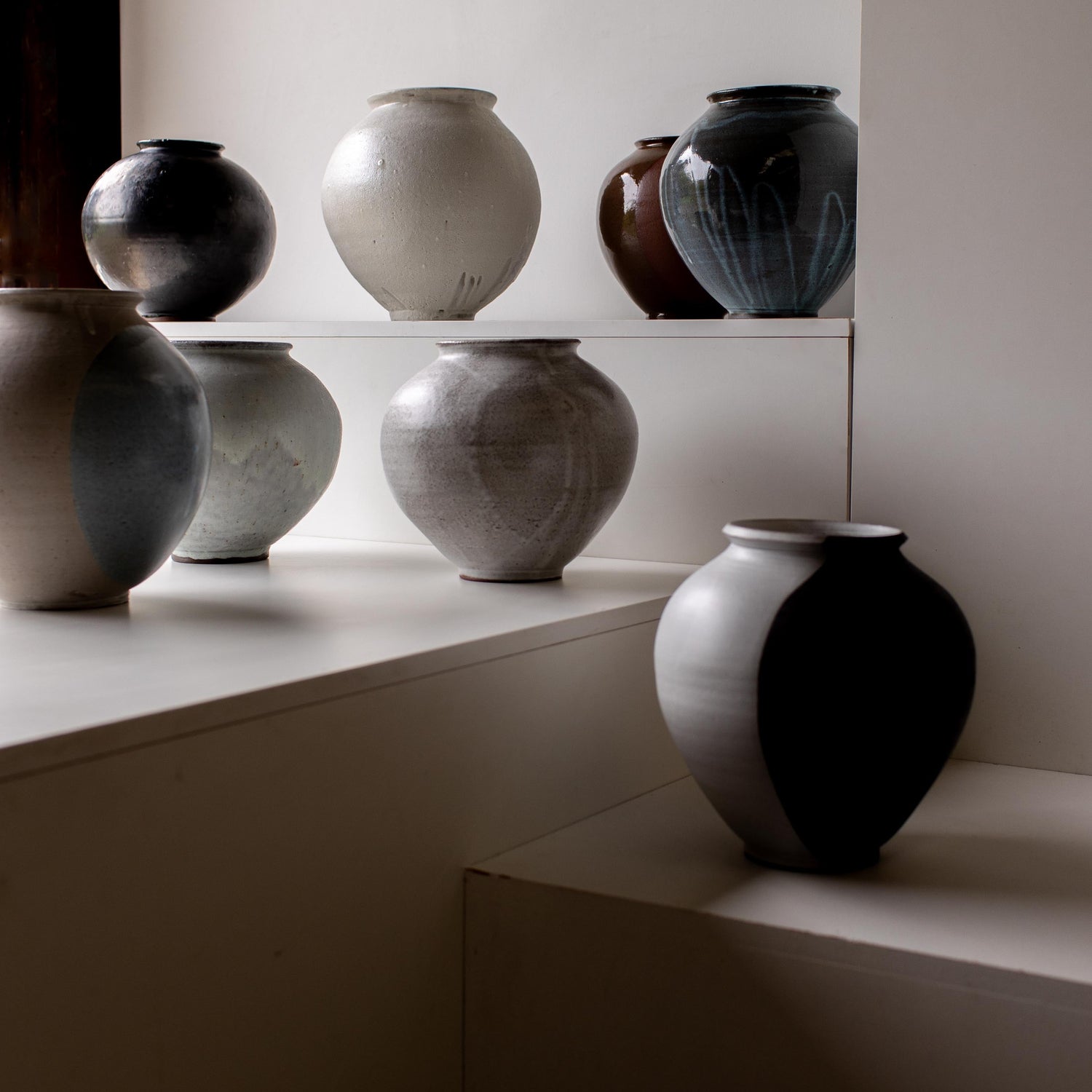 Shaped using traditional Korean techniques learned during my residency with master ceramic artist Kwak Kyungtae, these moon jars explore light — and all the light we cannot see. Each vessel is formed from recycled dark stoneware clays and finished with ash glazes, slips, and soft pearl lustres. The collection reflects a quiet balance of tradition and experimentation, where subtle surfaces hold depth, glow, and the traces of their making.