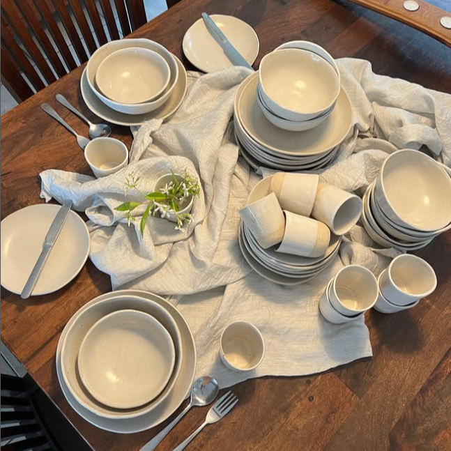 "We are delighted with our lovely dinner set - its shape and feel are just gorgeous. We are looking forward to sharing many meals and good times on these plates".