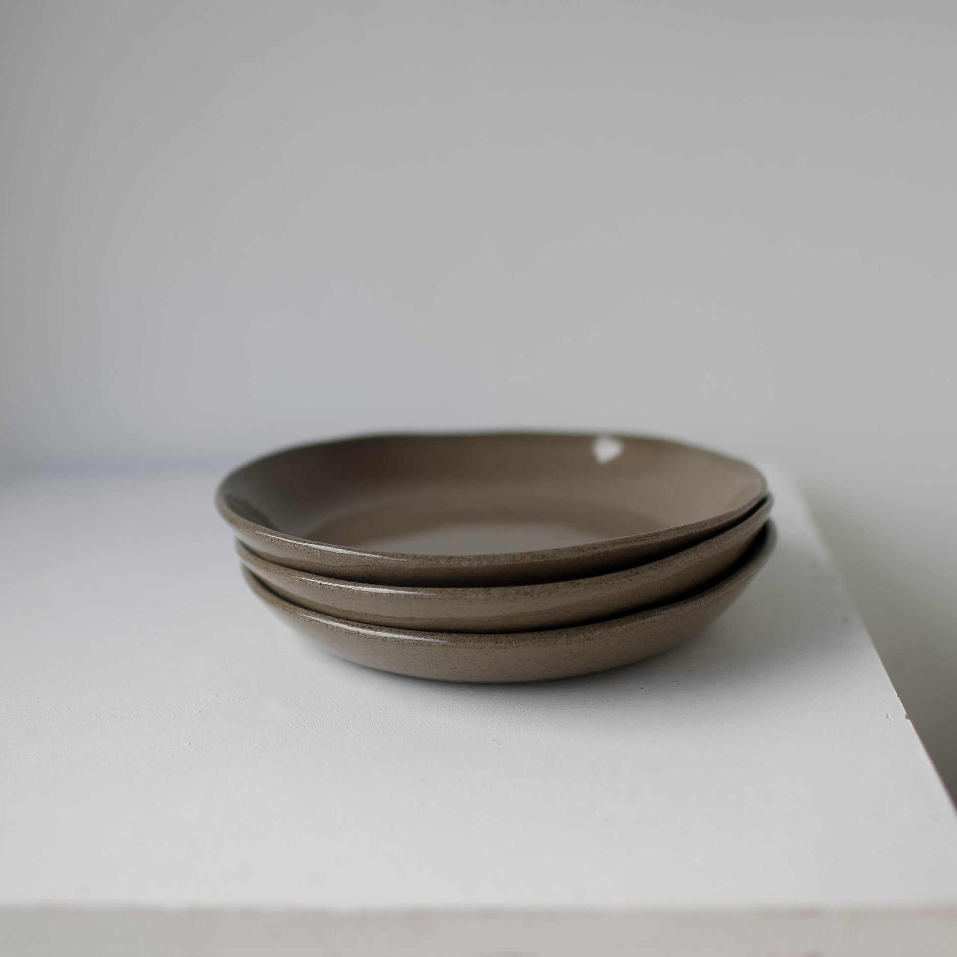 The plate most reached for in my home. The deeper form holds saucy dishes and abundant servings — Pasta, salads, risottos, curries, or anything with juices worth chasing (think the one pot dinner). Its minimal shape, flat base, and subtly irregular rim add quiet beauty to every meal.