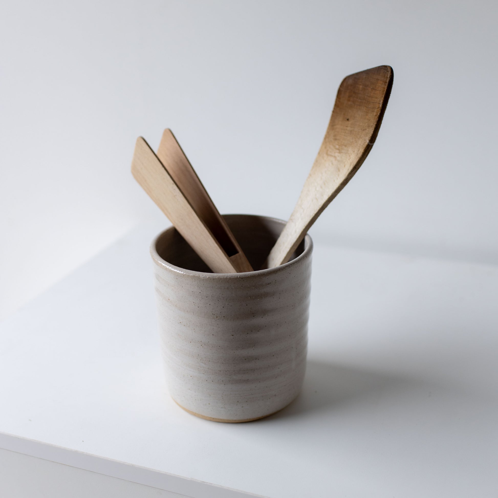 Versatile vessels that work as planters, cooking utensil holders, or storage for whatever needs a home. Their straight sides and substantial base give them stability, Each pot is thrown on the pottery wheel and has its own subtle variations in shape and texture, making them as individual as the things you choose to put in them.