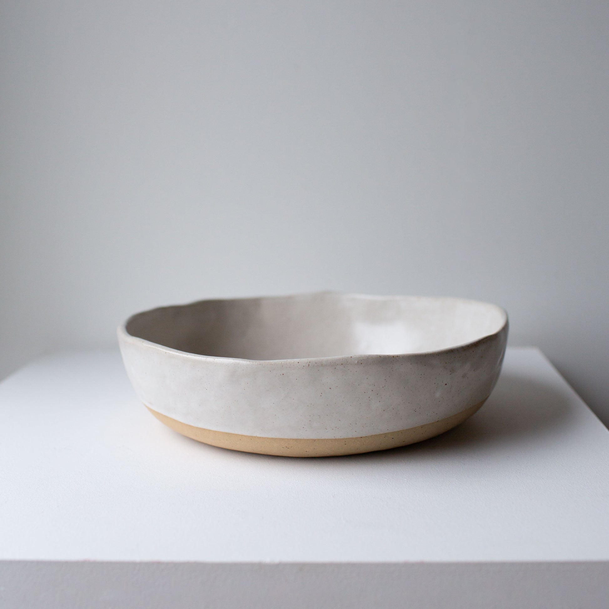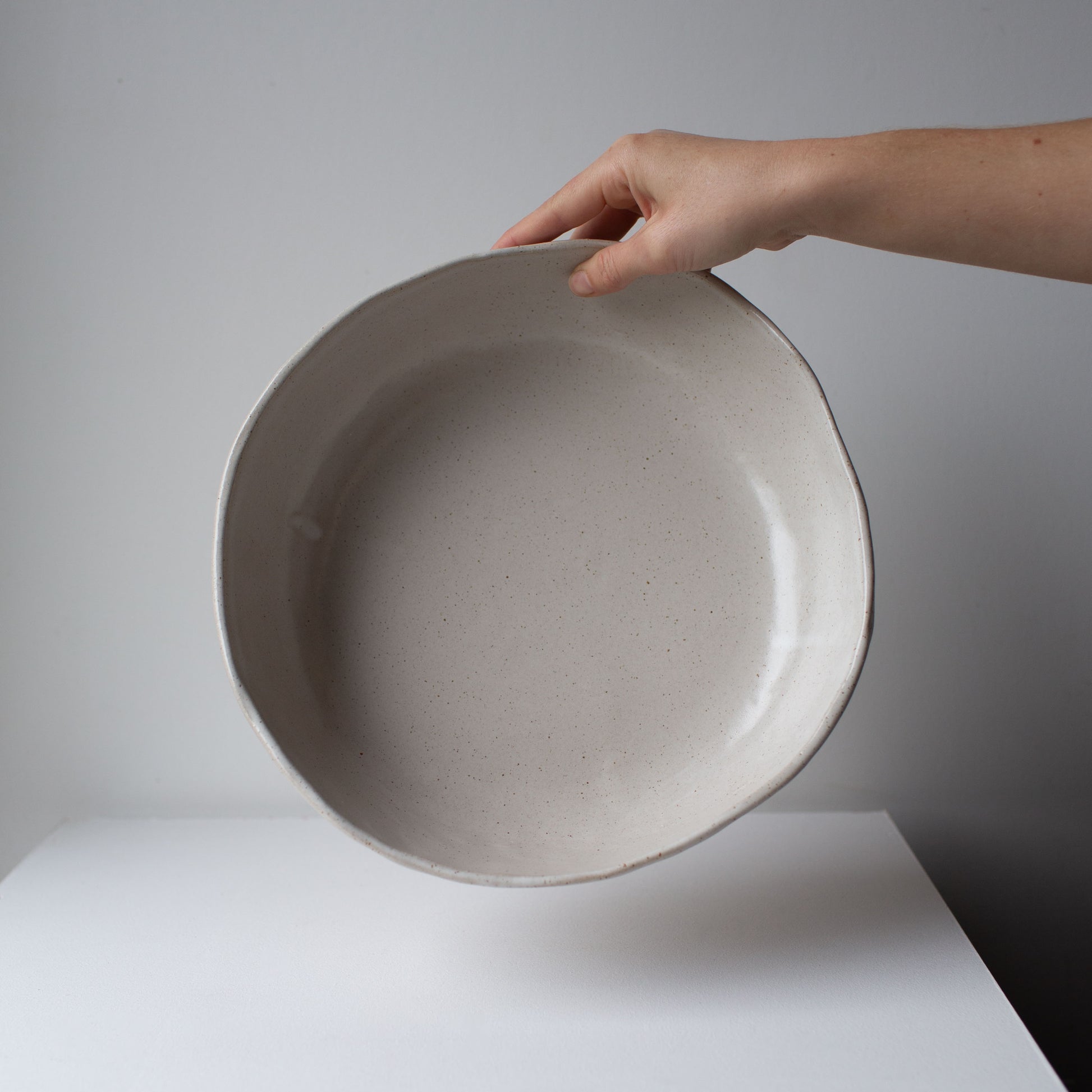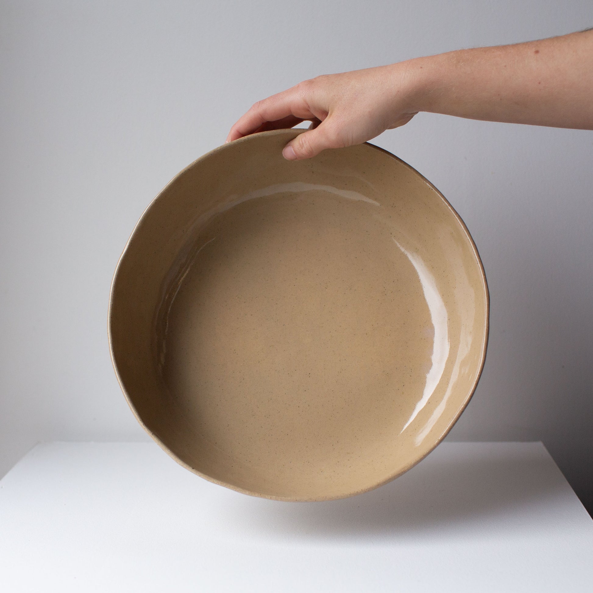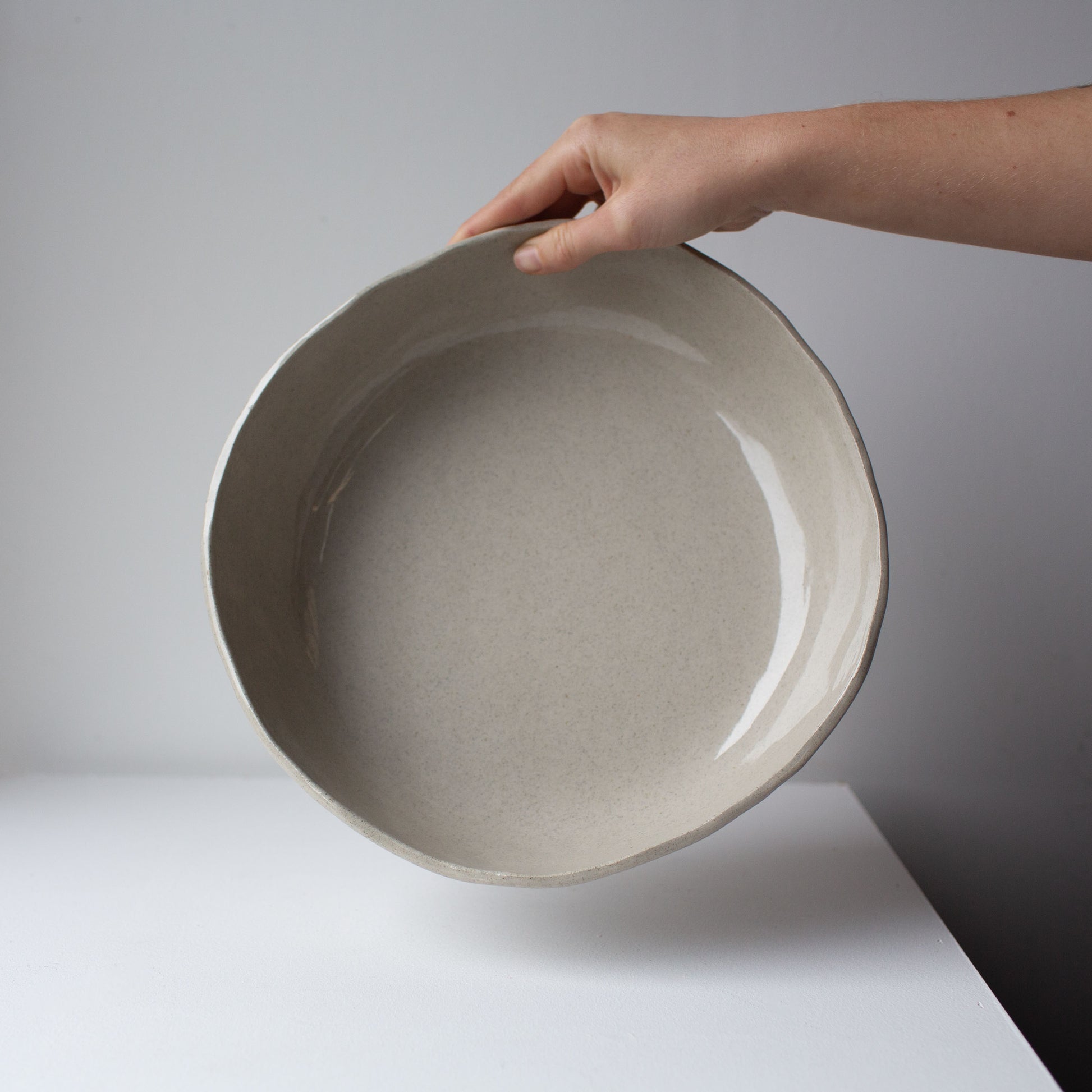 This is the bowl that anchors a table. Sized for sharing — for serving abundant salads, fresh breads, or a roast with all the extras. Bring it to the bbq or full of fresh fruit on the counter — Designed with a flat base and a gentle, subtly irregular rim that reflects its hand-made nature.