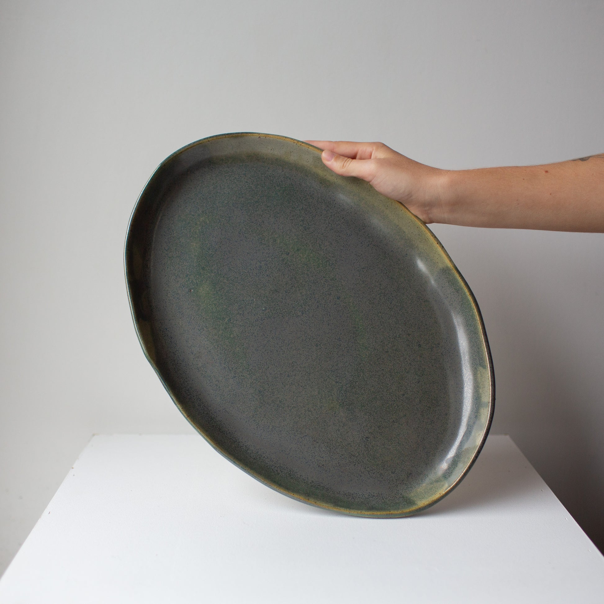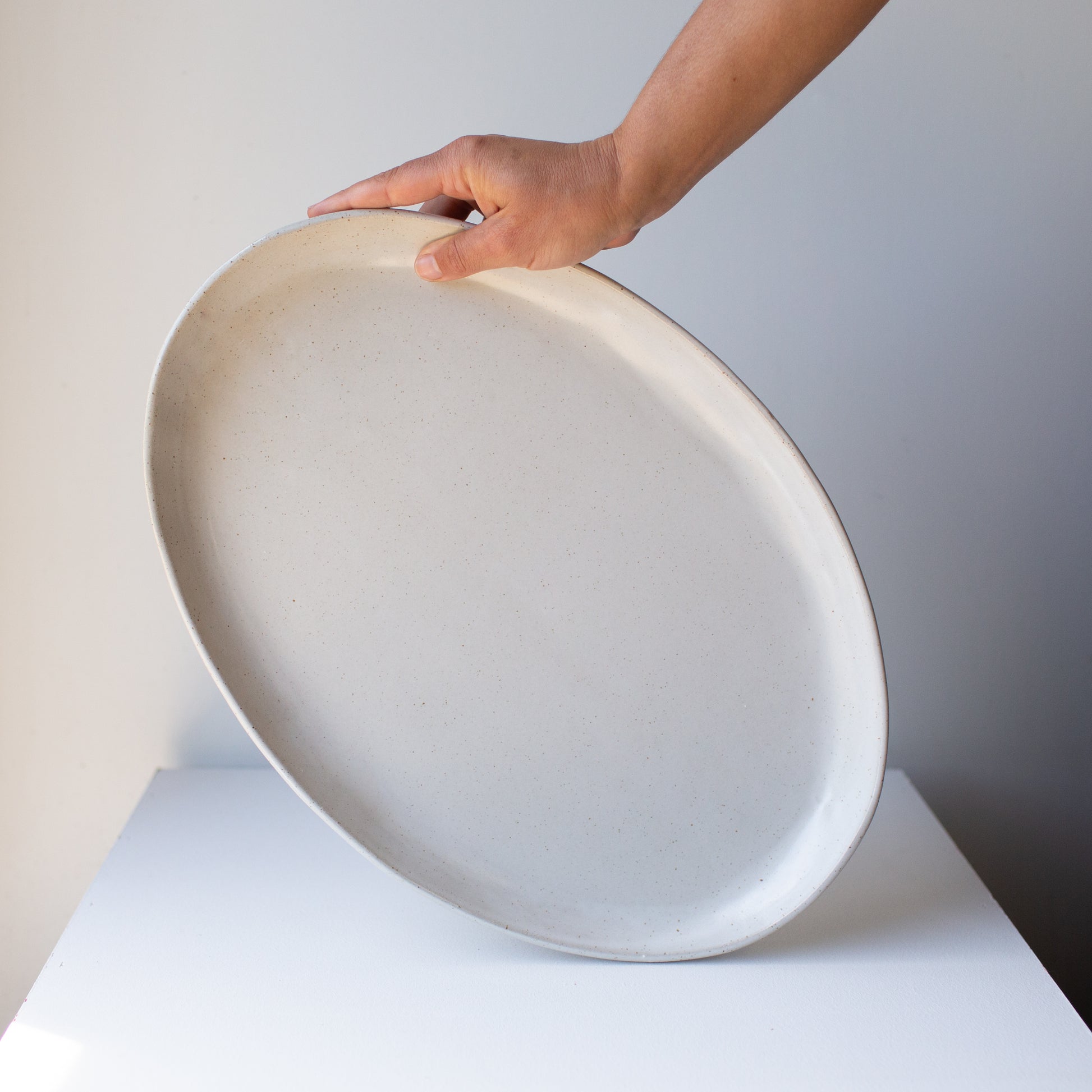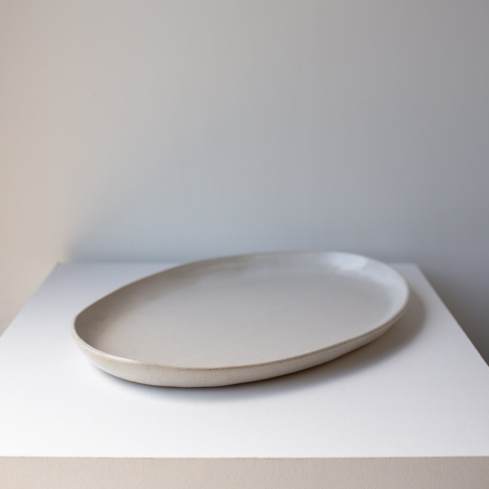 Elegance with everyday ease, Our Oval Platter was made for gatherings — arrange roasted vegetables, a whole side of salmon, cheeses and crackers or a spread of sweet treats. The slim profile and hand shaped edge make it a quiet centerpiece that speaks without shouting.