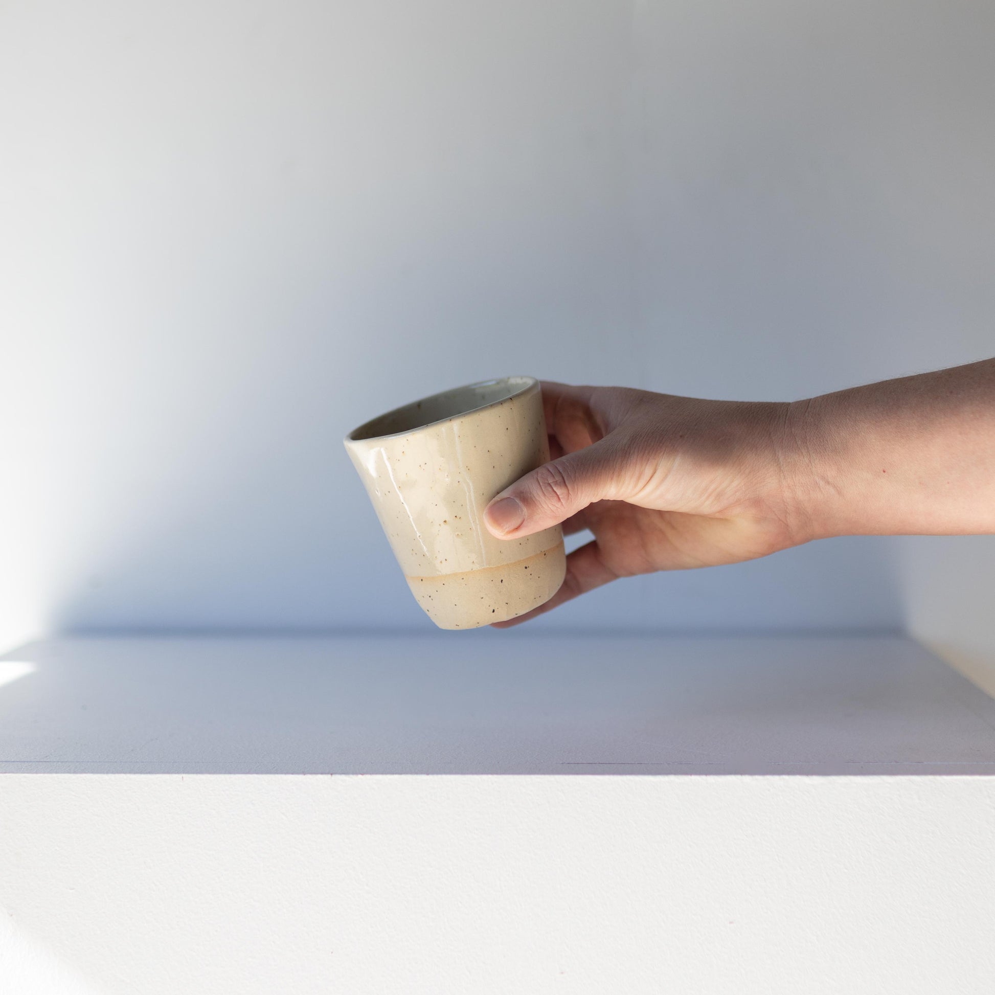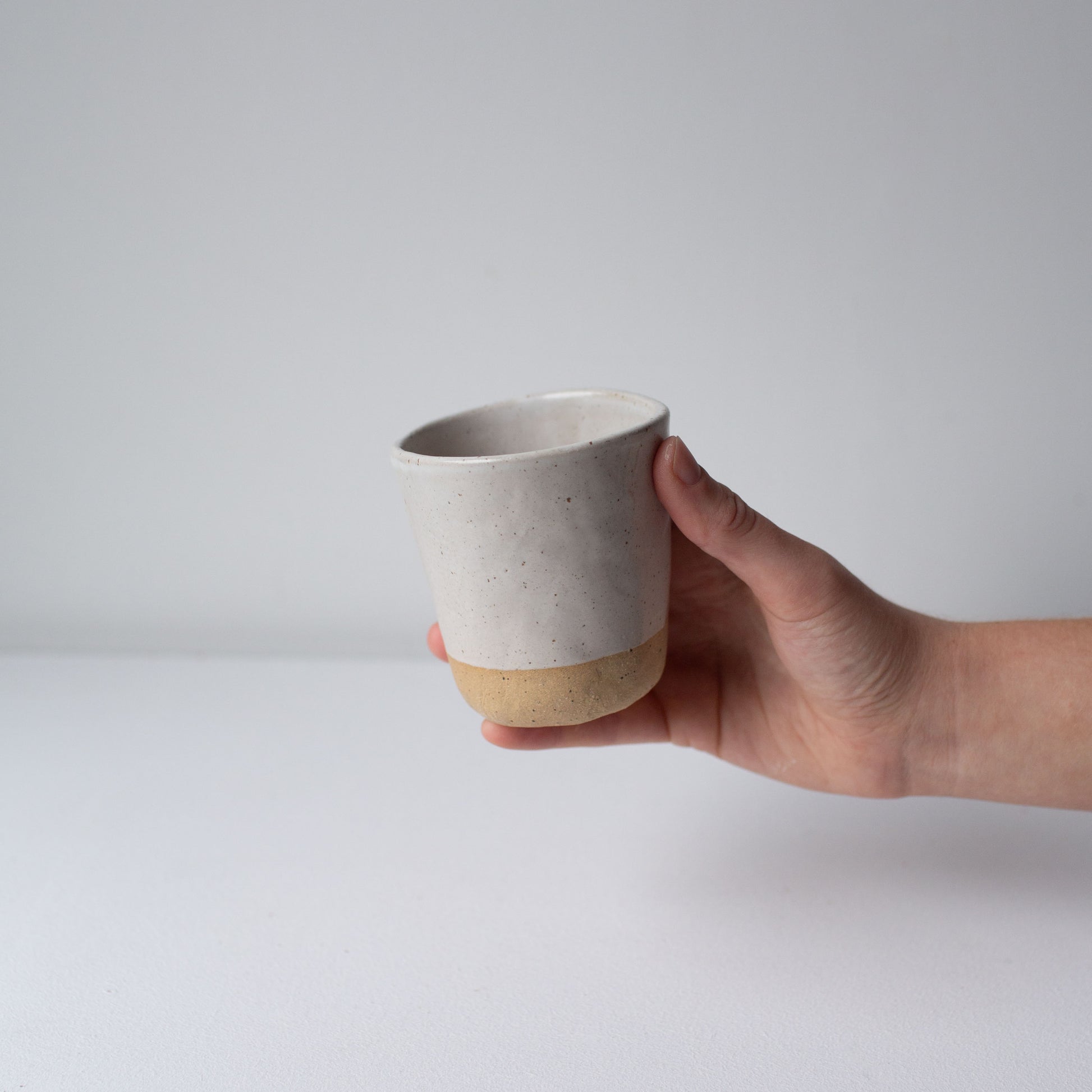 Unfussy and quietly beautiful, this tumbler suits your morning flat white, mid-afternoon long black or evening herbal tea. With a smooth curve and flat base, Each tumbler has subtle variations around the rim that remind you it was carefully shaped by hand.